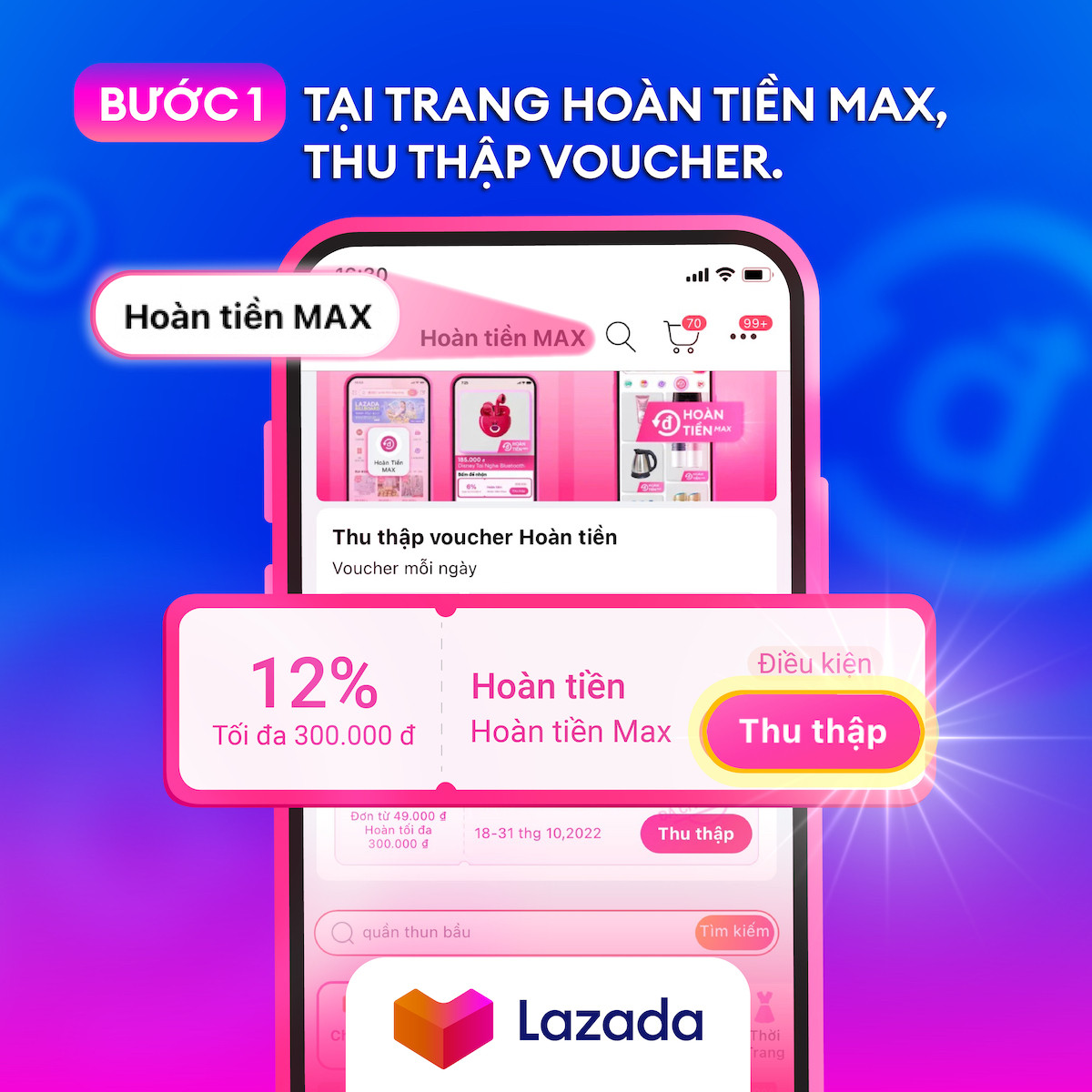 Hình ảnh minh họa giao diện thu thập voucher Hoàn Tiền MAX.